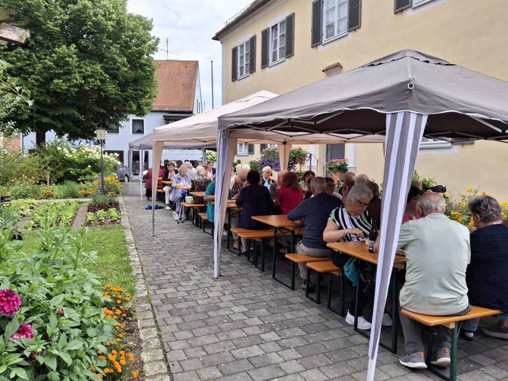 Bei angenehmen Sommerwetter konnte wieder das beliebte Seniorengrillfest im Pfarrgarten stattfinden. Über 100 Senioren aus der gesamten Pfarreiengemeinschaft wurden vom Seniorenteam bestens versorgt. Das Grillteam um Pfarrer Günter Müller hatte viel zu tun und später gab es auch noch eine selbstgemachte Bowle und Eis. Das Harmony-Trio sorgte wieder für musikalische Unterhaltung und so war es für alle Besucher ein recht unterhaltsamer Nachmittag.