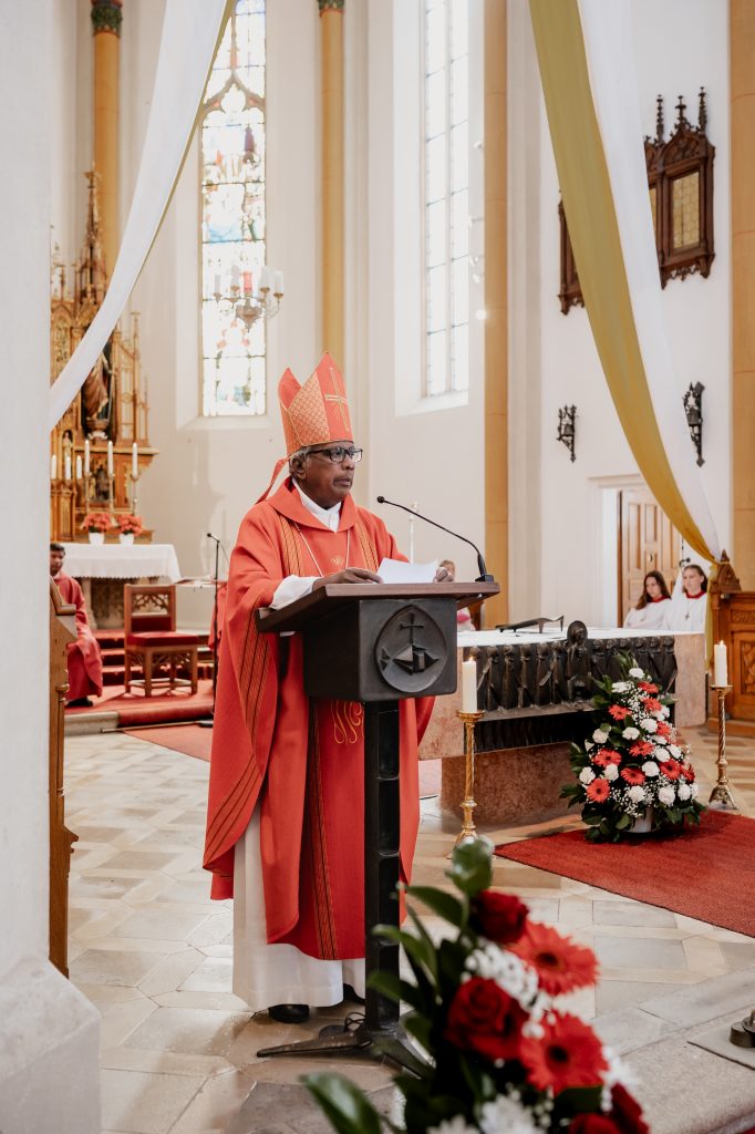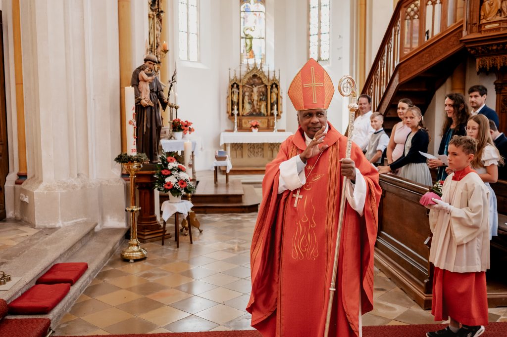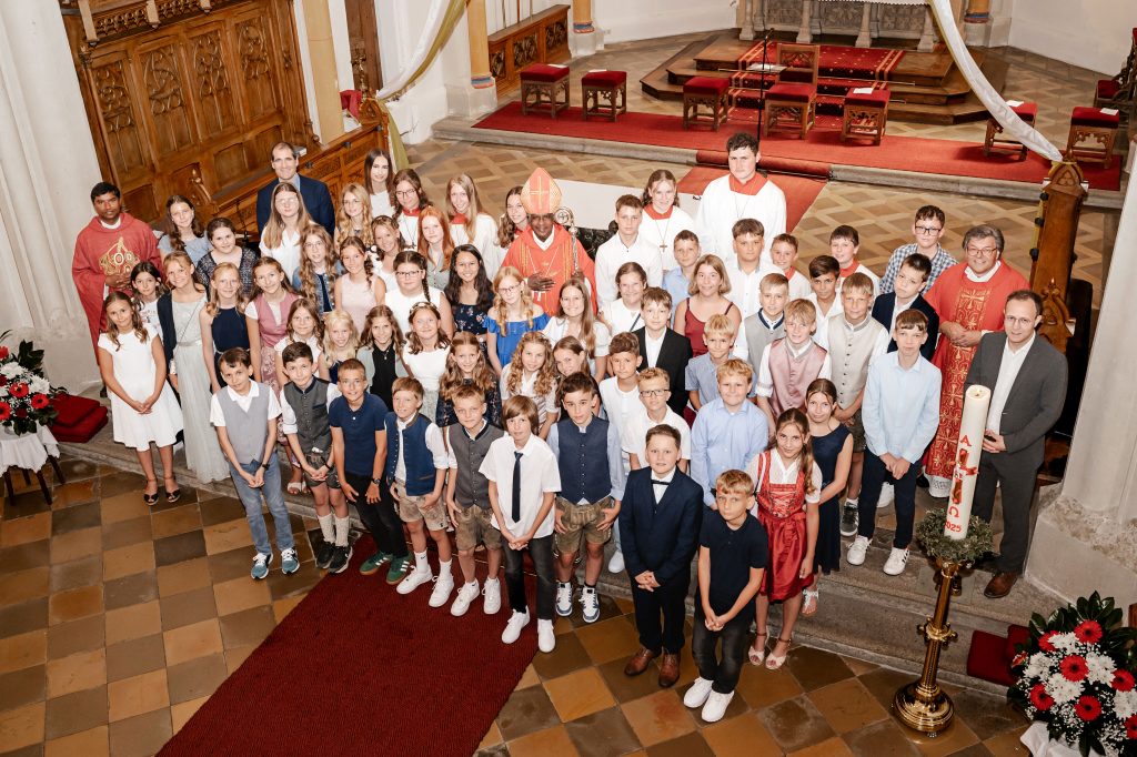 Am Samstag, 5. Juli 2025 empfingen 55 Jugendliche aus der Pfarreiengemeinschaft Pfeffenhausen, Niederhornbach mit Oberlauterbach, Pfaffendorf und Rainertshausen in der Pfarrkirche St. Martin das Sakrament der Firmung vom indischen Bischof Dr. Moses Prakasam. Bei der Firmung komme der Heilige Geist über die Jugendlichen und verändere ihr ganzes Leben, predigte er. Der Heilige Geist geben den Menschen die Instrumente für ein Leben in Frieden und Harmonie. In seiner Predigt bezeichnete Bischof Moses die Firmung als Schlüsselerlebnis im Leben der jungen Christen, das alle Bereiche, ihres Lebens betreffe. Mit der Firmung erfahren die Jugendlichen das Pfingstfest neu, als damals die Apostel in ihrer Angst gefangen gewesen sind. Als sie vom Heiligen Geist erfüllt wurden, seien sie mutig und selbstsicher geworden und gaben kraftvoll Zeugnis für Jesus Christus. Die Firmung mache aus den Jugendlichen vollwertige Mitglieder der Kirche. „Durch die Firmung macht euch Christus zu seinen Verbündeten“, betonte Bischof Moses. Niemals sollten sich die Jugendlichen dafür schämen, Christ zu sein. Anschließend breite Bischof Moses die Hände über den Firmlingen aus und rief so im Gebet die Gaben des heiligen Geistes herab. Im Anschluss traten die jungen Christen mit ihren Paten einzeln vor dem Firmspender und wurden mit Chrisam gesalbt und mit den Worten „Sei besiegelt durch die Gabe Gottes, den Heiligen Geist“ gestärkt. Zum Abschluss dankte Bischöflich Geistlicher Rat Günter Müller allen Firmlingen, Eltern und Paten für die gute Vorbereitung und Begleitung. Erfreut zeigte er sich auch über die Anwesenheit von Bürgermeister Florian Hölzl und Konrektor Florian Frohnholzer, was die gute Verbindung von Kirche, Schule und Marktgemeinde zeige. Der Kopingchor umrahmte den Firmgottesdienst musikalisch wieder besonders stimmungsvoll und im Anschluss hatte der Pfarrgemeinderat für die Familien im Pfarrgarten einen Stehempfang vorbereitet.